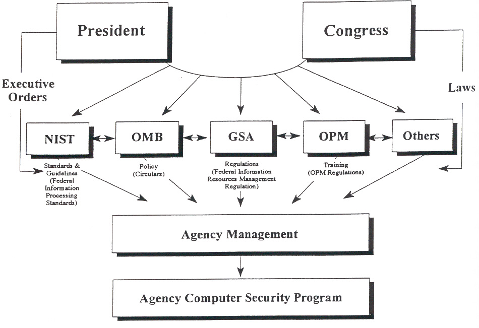 A federal agency computer security program is created and operates in an environment rich in guidance and direction from other organizations. Figure 6.1 illustrates some of the external sources of requirements and guidance directed toward agency management with regard to computer security. While a full discussion of each is outside the scope of this chapter, it is important to realize that a program does not operate in a vacuum; federal organizations are constrained - by both statute and regulation - in a number of ways.