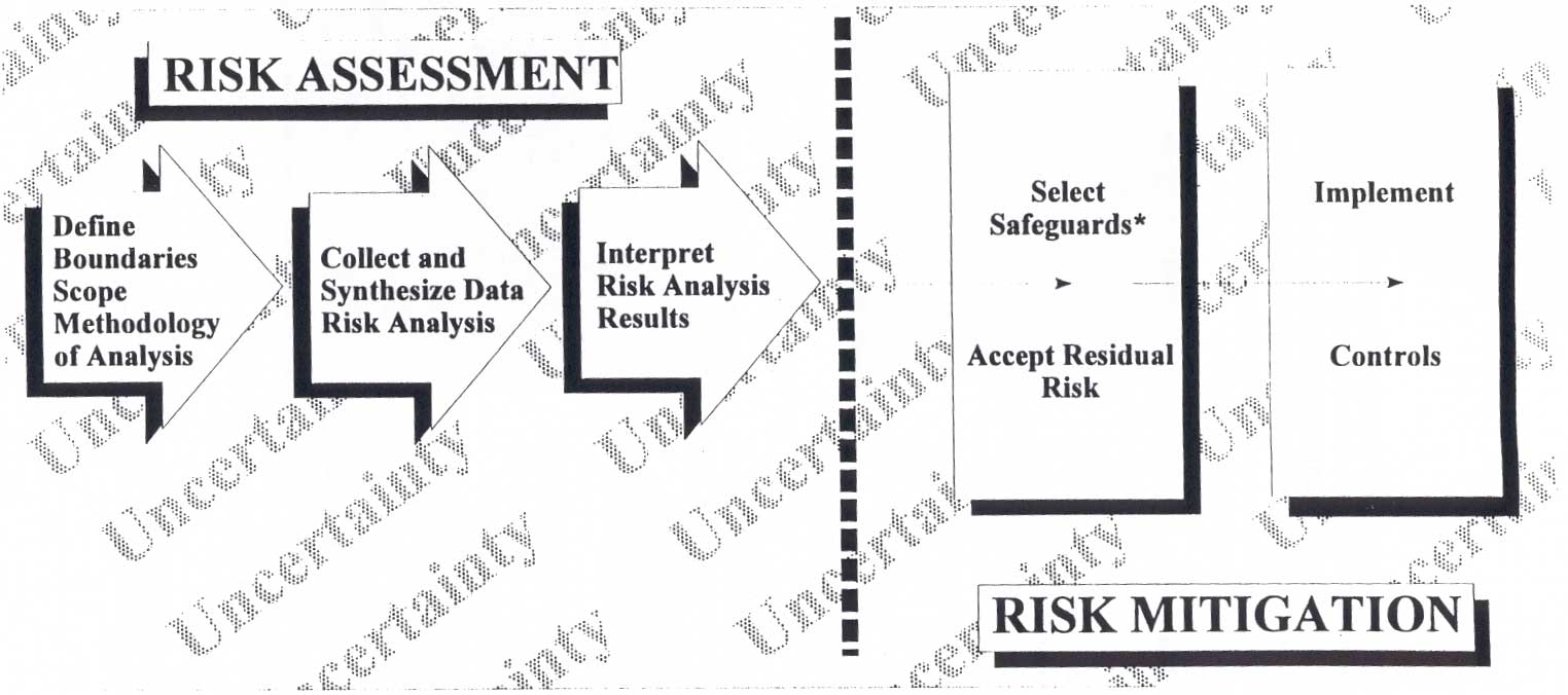 One method of selecting safeguards uses a "what if" analysis. With this method, the effect of adding various safeguards (and, therefore, reducing vulnerabilities) is tested to see what difference each makes with regard to cost, effectiveness, and other relevant factors, such as those listed above. Trade-offs among the factors can be seen. The analysis of trade-offs also supports the acceptance of residual risk, discussed below. This method typically involves multiple iterations of the risk analysis to see how the proposed changes affect the risk analysis result. Another method is to categorize types of safeguards and recommend implementing them for various levels of risk. For example, stronger controls would be implemented on high-risk systems than on low-risk systems. This method normally does not require multiple iterations of the risk analysis. As with other aspects of risk management, screening can be used to concentrate on the highest-risk areas. For example, one could focus on risks with very severe consequences, such as a very high dollar loss or loss of life or on the threats that are most likely to occur. 7.2.2 Accept Residual RiskAt some point, management needs to decide if the operation of the computer system is acceptable, given the kind of severity of remaining risks. Many managers do not fully understand computer-based risk for several reasons: (1) the type of risk may be different from risks previously associated with the organization or function; (2) the risk may be technical and difficult for a lay person to understand, or (3) the proliferation and decentralization of computing power can make it difficult to identify key assets that may be at risk. Risk acceptance, like the selection of safeguards, should take into account various factors besides those addressed in the risk assessment. In addition, risk acceptance should take into account the limitations of the risk assessment. (See the section below on uncertainty.) Risk acceptance is linked to the selection of safeguards since, in some cases, risk may have to be accepted because safeguards are too expensive (in either monetary or nonmonetary factors). Within the federal government, the acceptance of risk is closely linked with the authorization to use a computer system, often called accreditation, discussed in Chapters 8 and 9. Accreditation is the acceptance of risk by management resulting in a formal approval for the system to become operational or remain so. As discussed earlier in this chapter, one of the two primary functions of risk management is the interpretation of risk for the purpose of risk acceptance. 7.2.3 Implementing Controls and Monitoring EffectivenessMerely selecting appropriate safeguards does not reduce risk; those safeguards need to be effectively implemented. Moreover, to continue to be effective, risk management needs to be an ongoing process. This requires a periodic assessment and improvement of safeguards and re-analysis of risks. Chapter 8 discusses how periodic risk assessment is an integral part of the overall management of a system. (See especially the diagram - Figure 8.2 in Chapter 8) The risk management process normally produces security requirements that are used to design, purchase, build, or otherwise obtain safeguards or implement system changes. The integration of risk management into the life cycle process is discussed in Chapter 8. 7.3 Uncertainty Analysis